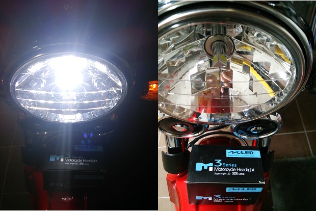 バイクLED交換 前回 購入した物は CB1100行きになって...(-_-;)付くなら交換したいなぁ~って 「ヘッドカバーが若干形状が違う」 でも 買って付かなかったら心配だとかで では自分のを外して 試しに入るかなぁ~・・・ でぇ~ そのまま装着 オイラ再度購入 箱の違いが分かるかなぁ~物は同じですか カプラーがCBにぴたり配線の入れ替え無しで ぽん付けで行けましたー 若干の細工は必要ですが・・・ PR