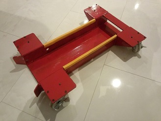 バイクドーリー 自作改良編 CB1300のフロント ドーリーを作ってみました改良して センターにキャスターを追加地上高は5mmに設定前輪乗り上げ部下側にタイル傷防止用に3ミリのゴムを貼りましたまぁ~普段使う事は無いと思うけど前回と違い、楽に横移動が出来ます \(^o^)/ PR